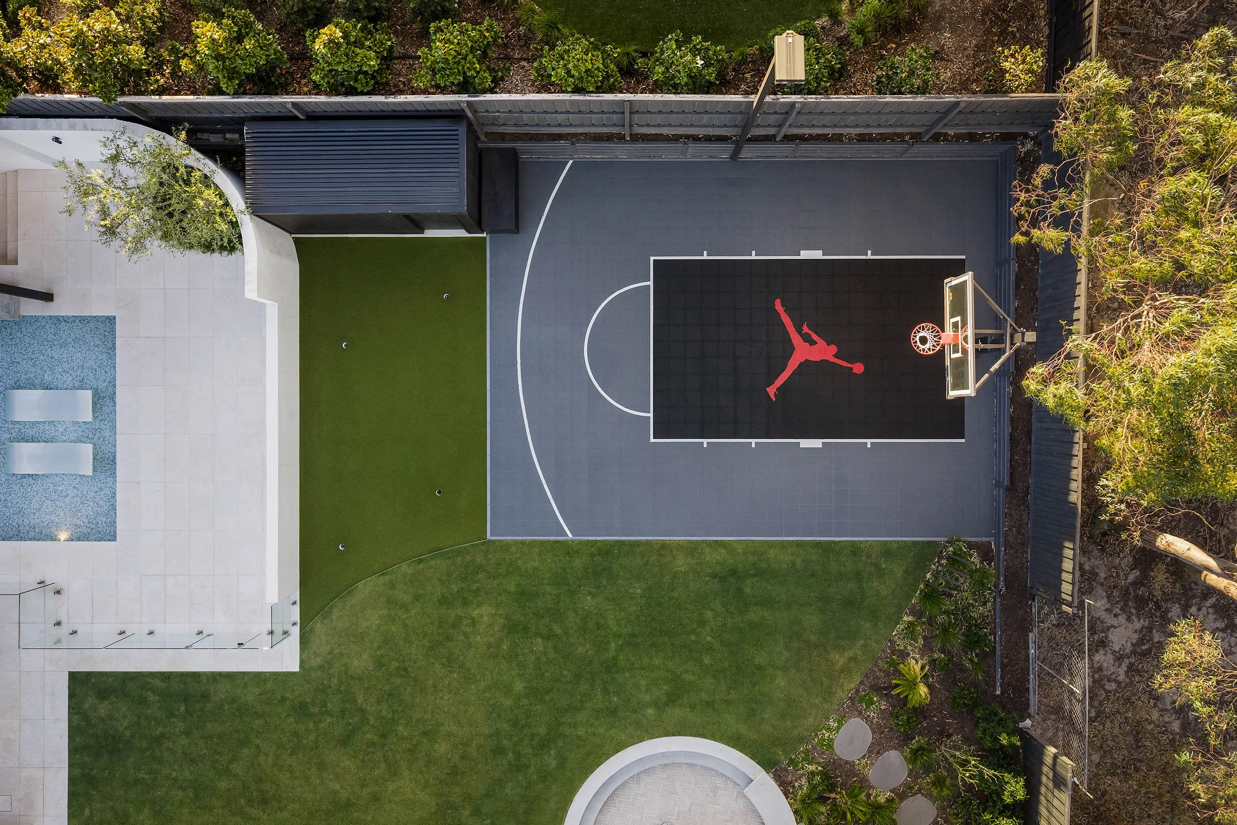 "Functional spaces like basketball courts can absolutely work within a garden design," Darin says. "The key is making sure they feel intentional and balanced within the broader landscape."