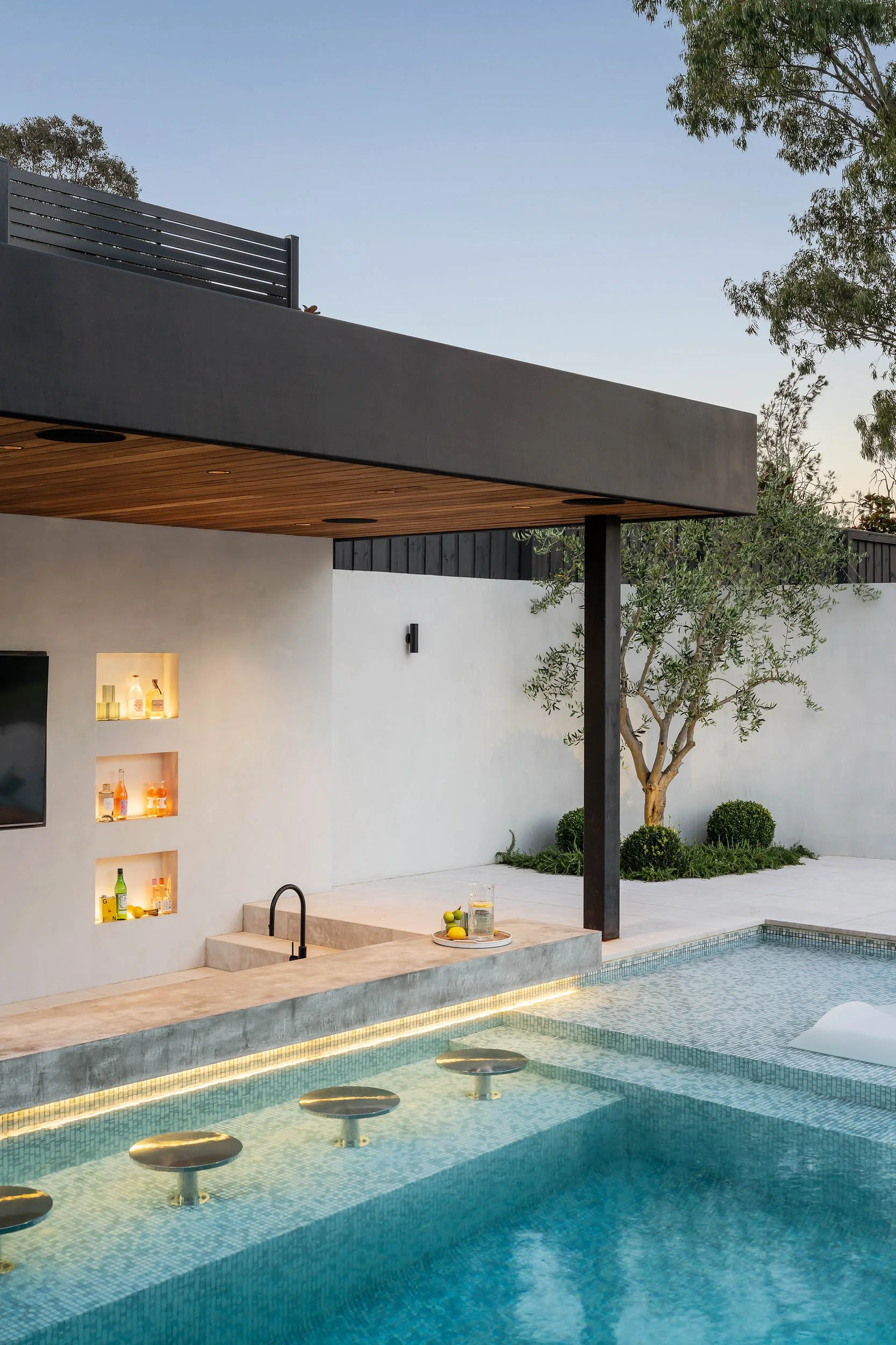 Our Balwyn North project was designed with family living in mind. Featuring a large pool with child-friendly oversized steps, a sun deck within the pool fencing for easy supervision, and an elevated position to match the house level, it’s all about blending function with style. See project >
